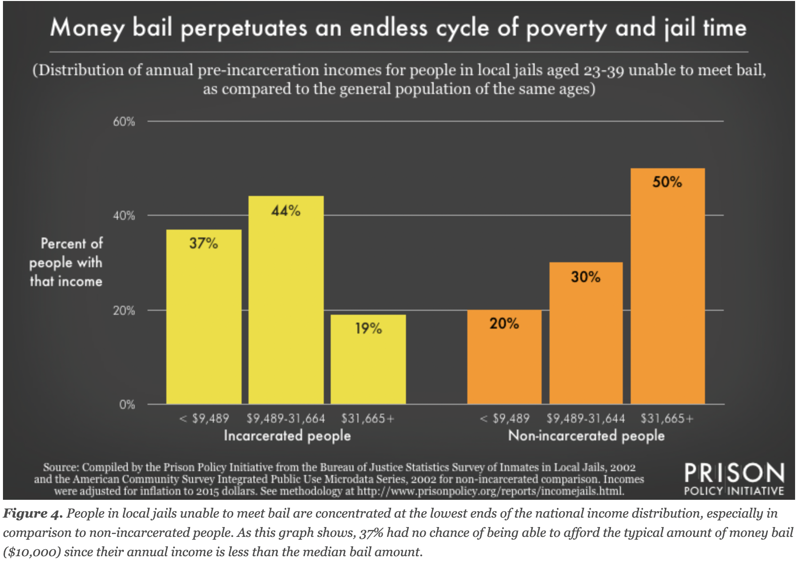 The median bail bond amount in this country represents eight months of income for the typical detained defendant. (Rabuy and Kopf)